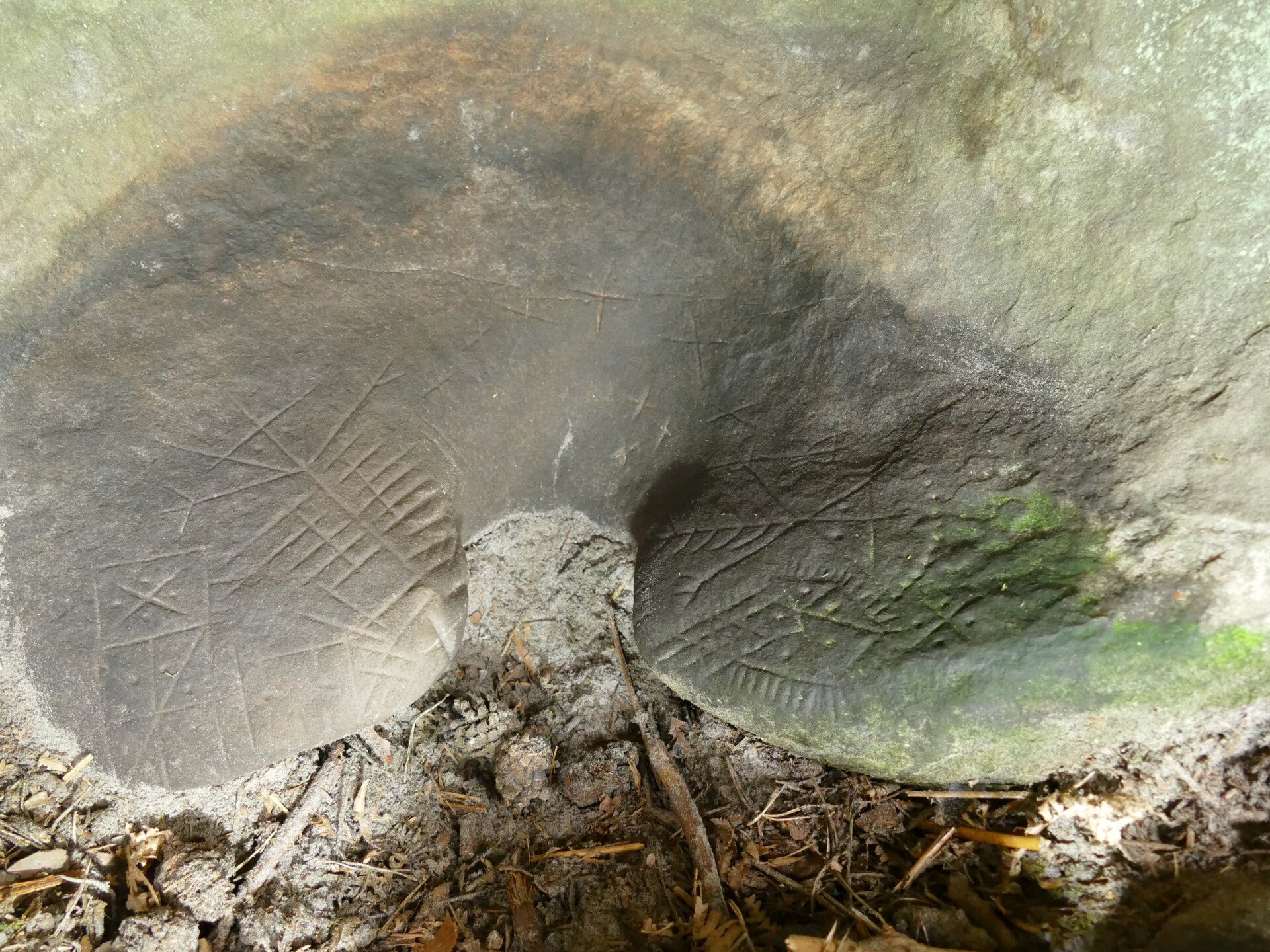 Courant d’année 2018, un ami me parle de nouvelles découvertes faites en forêt : Un nouveau style de gravures, très fines, de petites tailles et cachées souvent au ras du sol. Il me faudra beaucoup de temps avant de découvrir ces fameuses gravures. De plus, la COVID a fait son apparition, et mes recherches sont interrompues pour presque deux ans. Je repars à l’aventure sur de nouvelles bases. Mes recherches s’affinent pour finalement tomber sur ma première gravure . Quelques traits isolés mais fins comme sur la fameuse dalle du xxxx. Ayant compris la manière dont étaient faites les gravures, le positionnement dans la roche, la finesse des dessins etc., j’ai trouvé de plus en plus de ces gravures. Quelques-unes étant de simples sillons, d’autres des merveilles….
