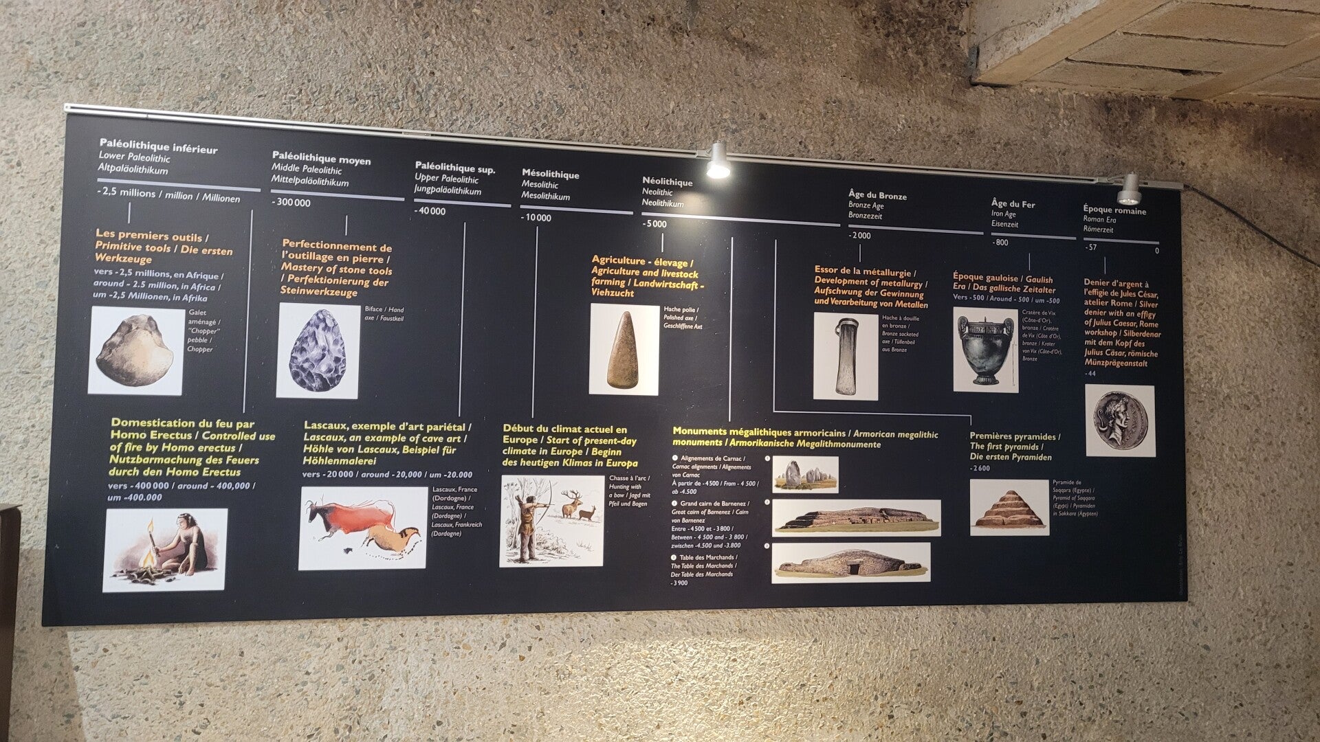 La construction du cairn primaire témoigne en effet avec le tumulus Saint-Michel, qui est situé dans le Vannetais, et le site de Bougon, dans le Poitou, des débuts du mégalithisme atlantique. Elle a lieu vers 4 700 avant notre ère (dans l'intervalle entre 5 010 et 4 400 avant notre ère), soit quelque 2 100 ans avant la plus ancienne pyramide d'Égypte et environ 7 000 ans après les débuts de l'architecture domestique, qui ont été observés au Moyen-Orient chez les Natoufiens de Mallaha, 5 000 ans après l'érection du premier temple monumental en Anatolie et 3 600 ans après celle de la tour de Jéricho en Cisjordanie.