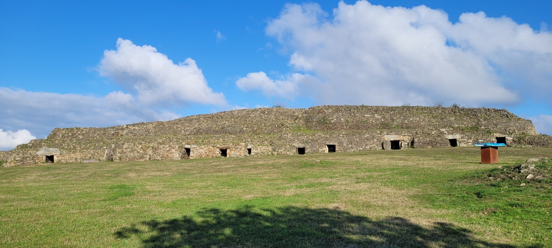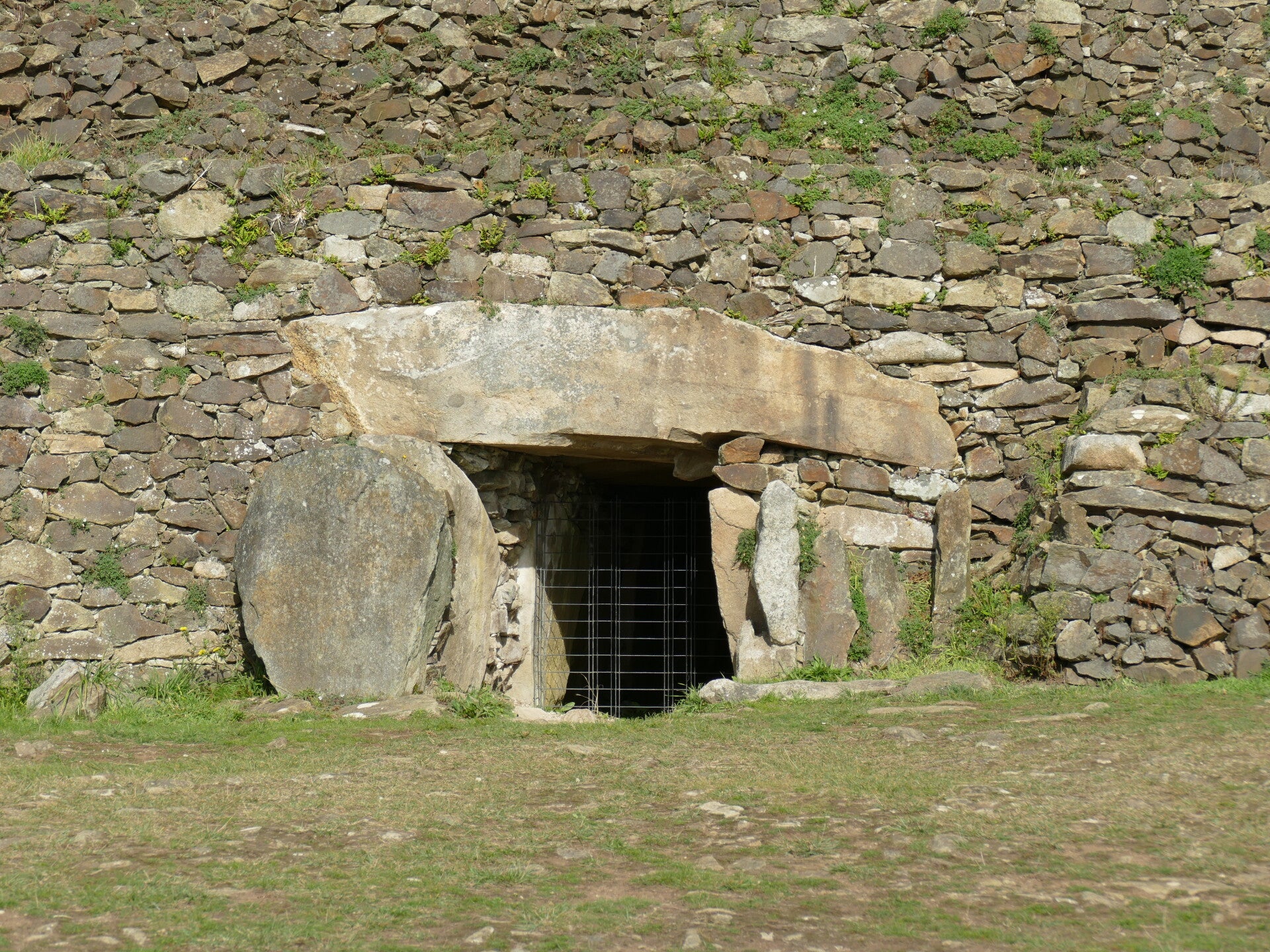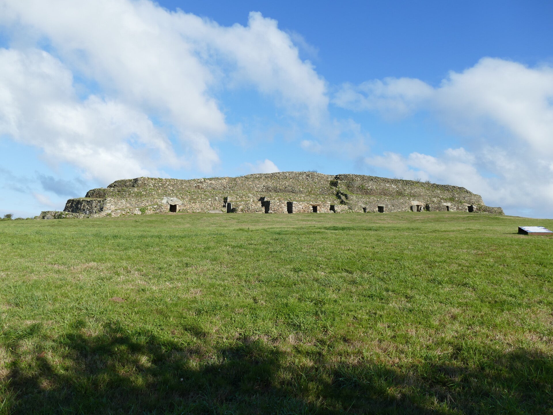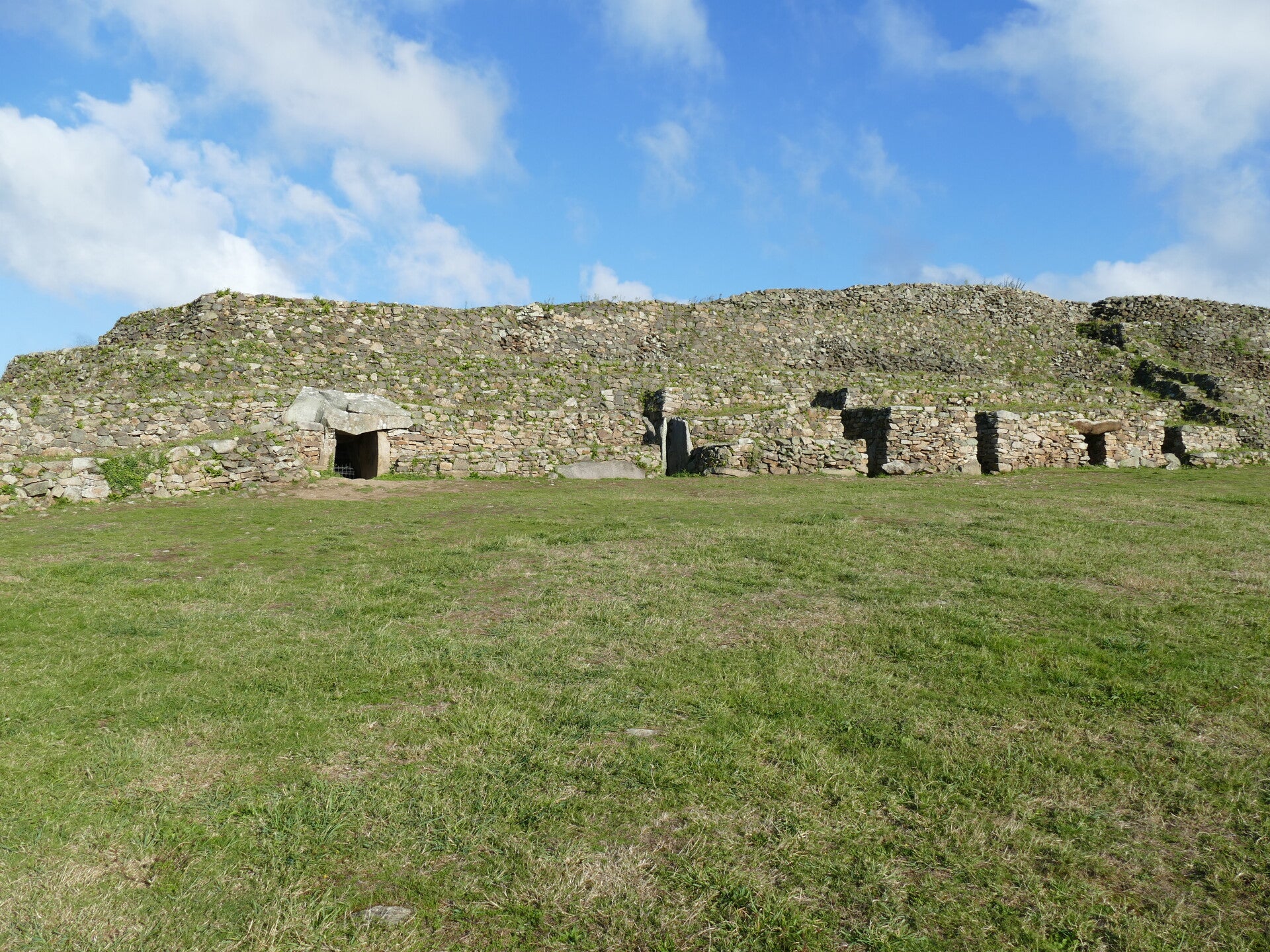 - La partie orientale (le « cairn primaire »), comportant cinq dolmens à couloir, est érigée aux alentours de 4700 avant notre ère. La métadolérite locale (dolérite métamorphisée) utilisée pour les deux parements lui donne une teinte sombre.