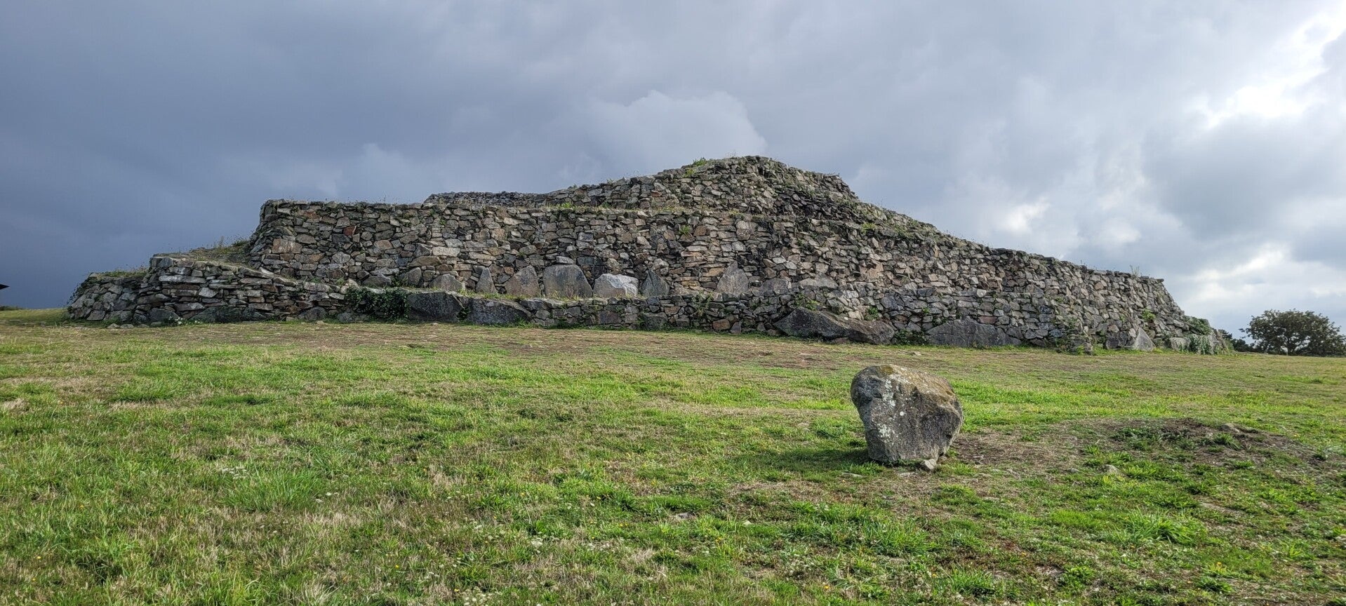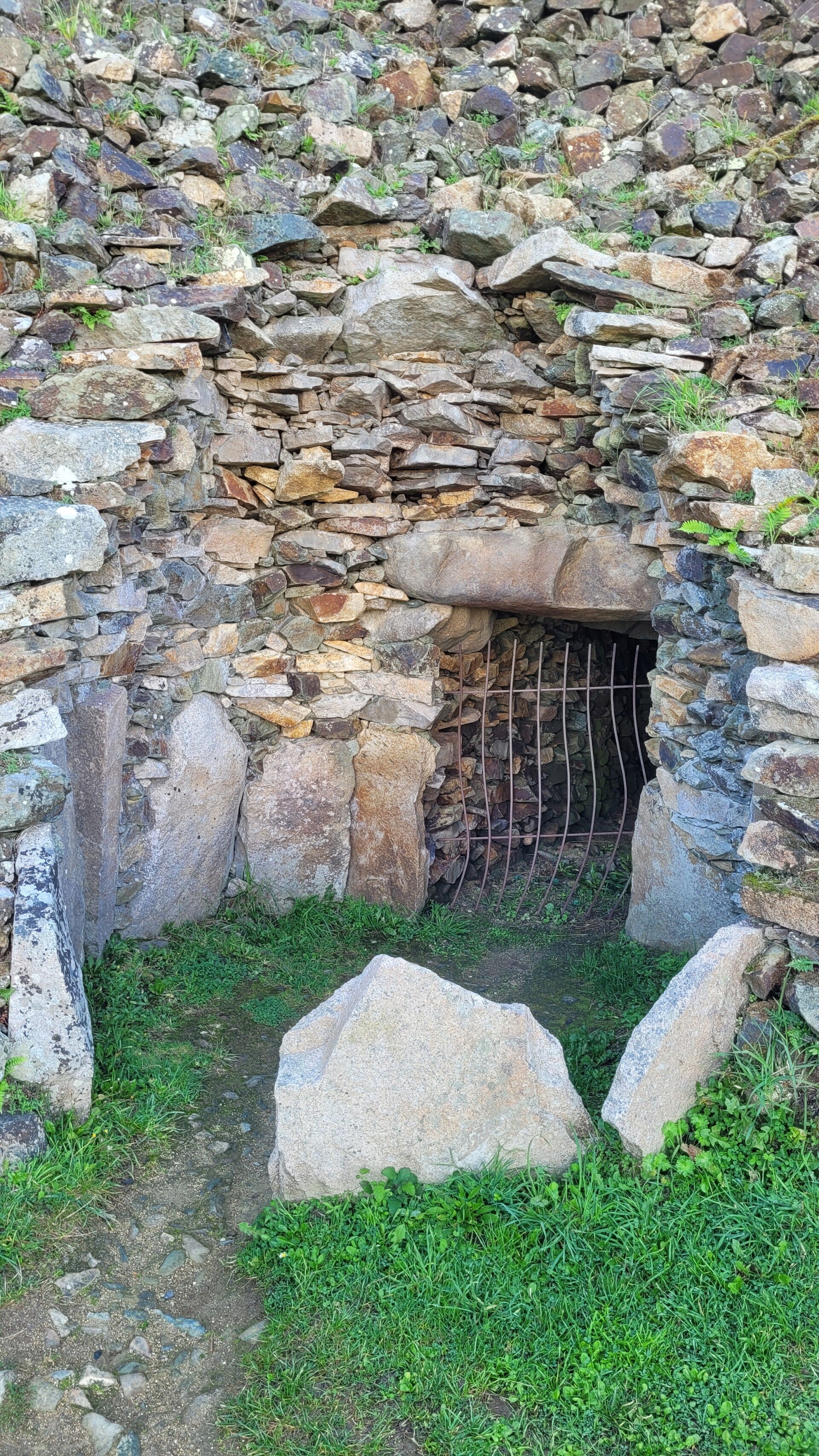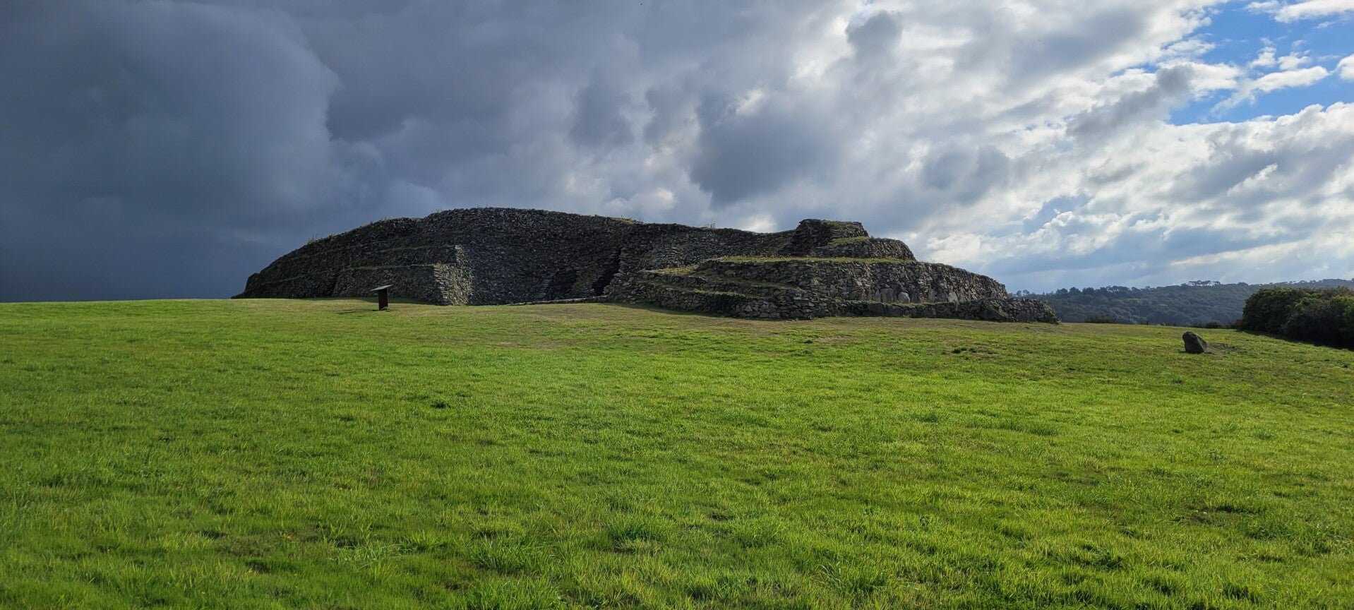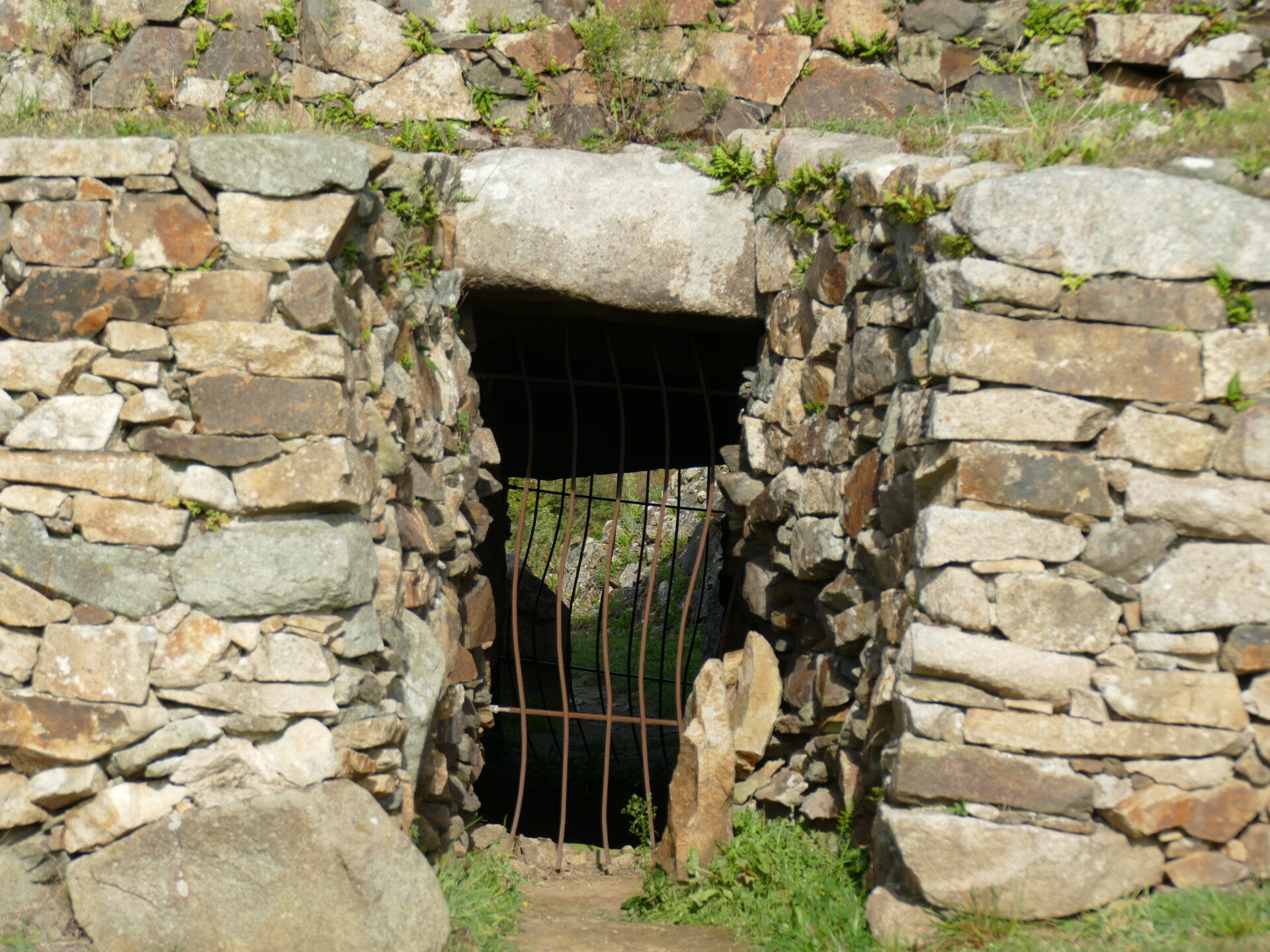 - La partie orientale (le « cairn primaire »), comportant cinq dolmens à couloir, est érigée aux alentours de 4700 avant notre ère. La métadolérite locale (dolérite métamorphisée) utilisée pour les deux parements lui donne une teinte sombre.